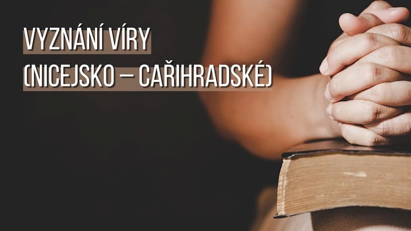 Věřím v jednoho Boha, Otce všemohoucího, Stvořitele nebe i země, všeho viditelného i neviditelného. Věřím v jednoho Pána Ježíše Krista, jednorozeného Syna Božího, který se zrodil z Otce přede všemi věky: Bůh z Boha, Světlo ze světla, pravý Bůh z pravého Boha, zrozený, nestvořený, jedné podstaty s Otcem: skrze něho všechno je stvořeno. On pro nás lidi a pro naši spásu sestoupil z nebe.